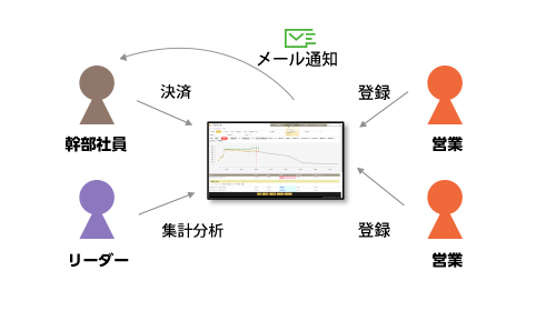 商談の金額や仕入の状況をデータベース化し、金額に応じて決済者に通知を送る等、業務プロセスを自動化できます。
